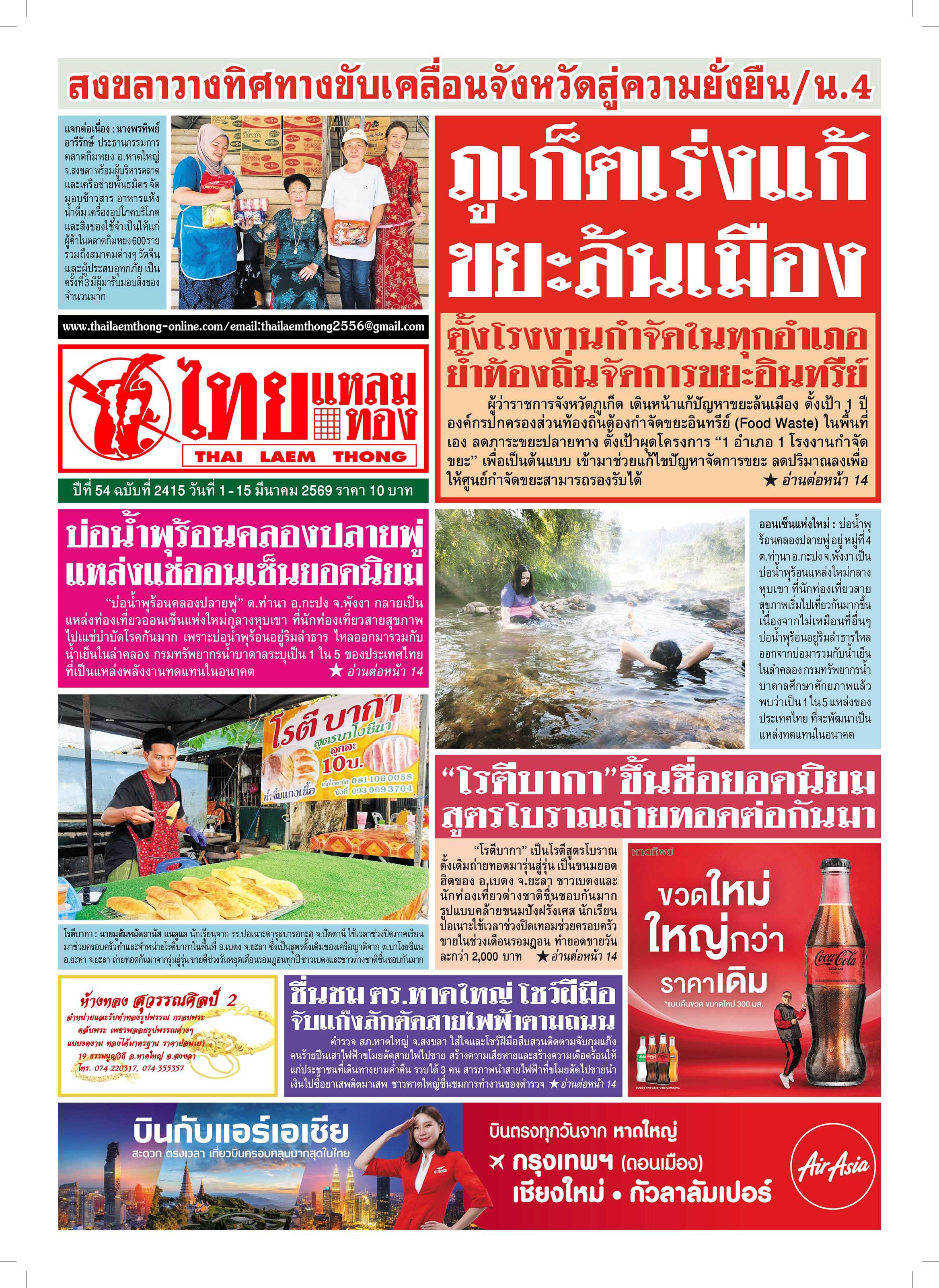 ภูเก็ต-ผู้ว่ารการจังหวัดภูเก็ต เดินหน้าแก้่ปัญหาขยะล้นเมือง ตั้งเป้า 1 ปี องค์กรปกครองส่วนท้องถิ่นต้องกำจัดขยะอินทรีย์ (Food Waste) ในพื้นที่เอง ลดภาระขยะปลายทาง ตั้งเป้าผุดโครงการ “1 อำเภอ 1 โรงงานกำจัดขยะ” เพื่อเป็นต้นแบบ เข้ามาข่วยแก้ปัญหาจัดการชยะ ลดปริมาณลงเพื่อให้ศูนย์กำจัดขยะสามารถรองรับได้ อ่าต่อหน้า 14