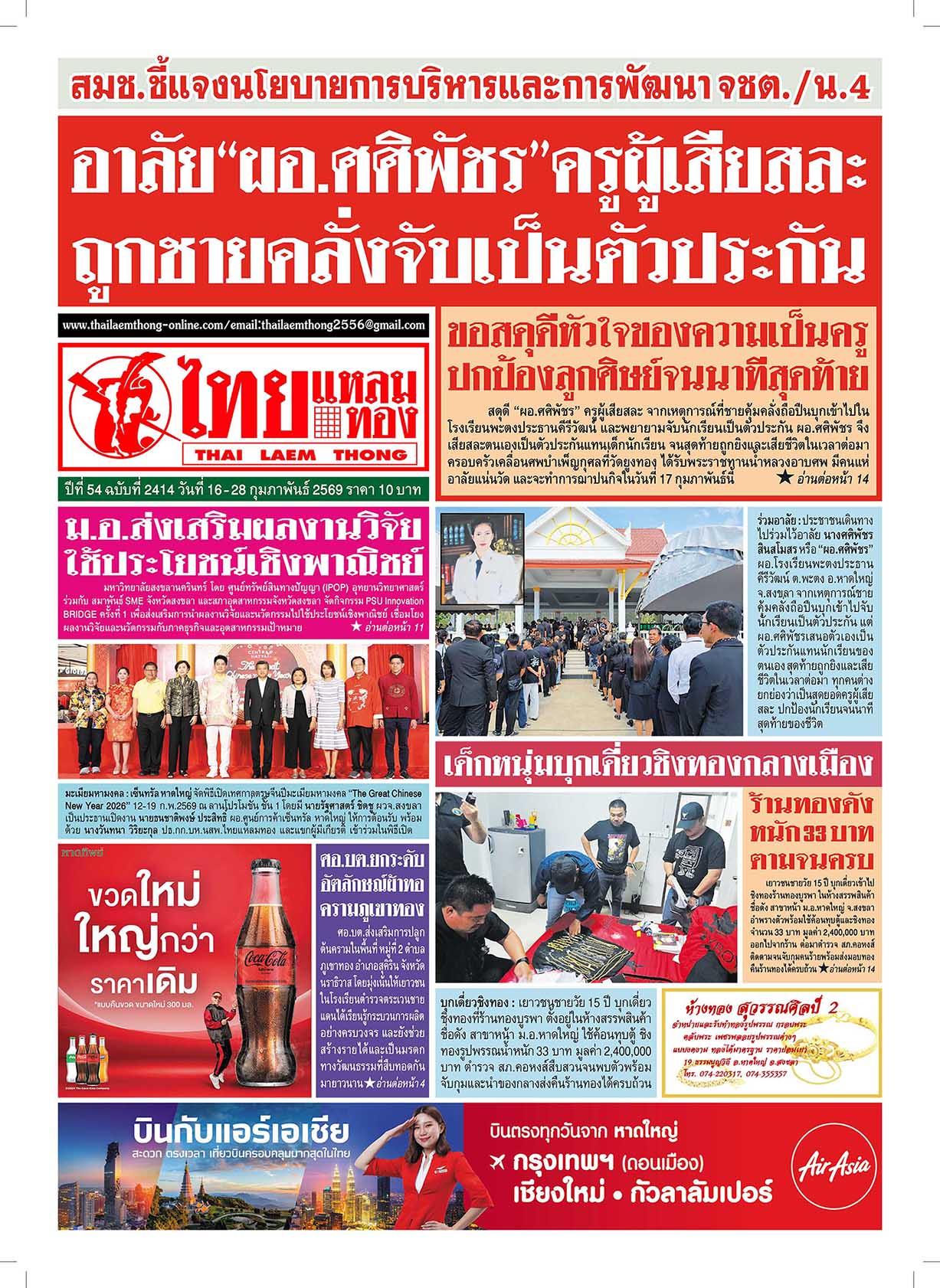สงขลา - เมื่อวันที่ 15 กุมภาพันธ์ 2569 ณ ลานโปรโมชั่น ชั้น 1 ศูนย์การค้าเซ็นทรัลหาดใหญ่ อำเภอหาดใหญ่ จังหวัดสงขลา นายสังคม เกิดก่อ รองผู้ว่าราชการจังหวัดสงขลา พร้อมด้วย นางวันทนา วิริยะกุล ประธานกรรมการบริหาร หนังสือพิมพ์ไทยแหลมทอง หาดใหญ่ และอุปนายกฝ่ายกิจกรรมพิเศษ สมาคมหนังสือพิมพ์แห่งประเทศไทย ในพระบรมราชูปถัมภ์ และอุปนายกสมาคมหนังสือพิมพ์ส่วนภูมิภาคแห่งประเทศไทย, ดร.จิตจัณ สาระวิโรจน์ รองประธานหอการค้าจังหวัดสงขลา และแขกผู้มีเกียรติ เข้าร่วมพิธีแก้ชงเสริมดวง เพื่อความเป็นสิริมงคลเนื่องในเทศกาลตรุษจีน ประจำปี 2569 โดยมีส่วนราชการ ผู้แทนหน่วยงาน ประชาชนชาวไทยเชื้อสายจีน และนักท่องเที่ยวทั้งไทยและต่างประเทศ เข้าร่วมอย่างคึกคัก