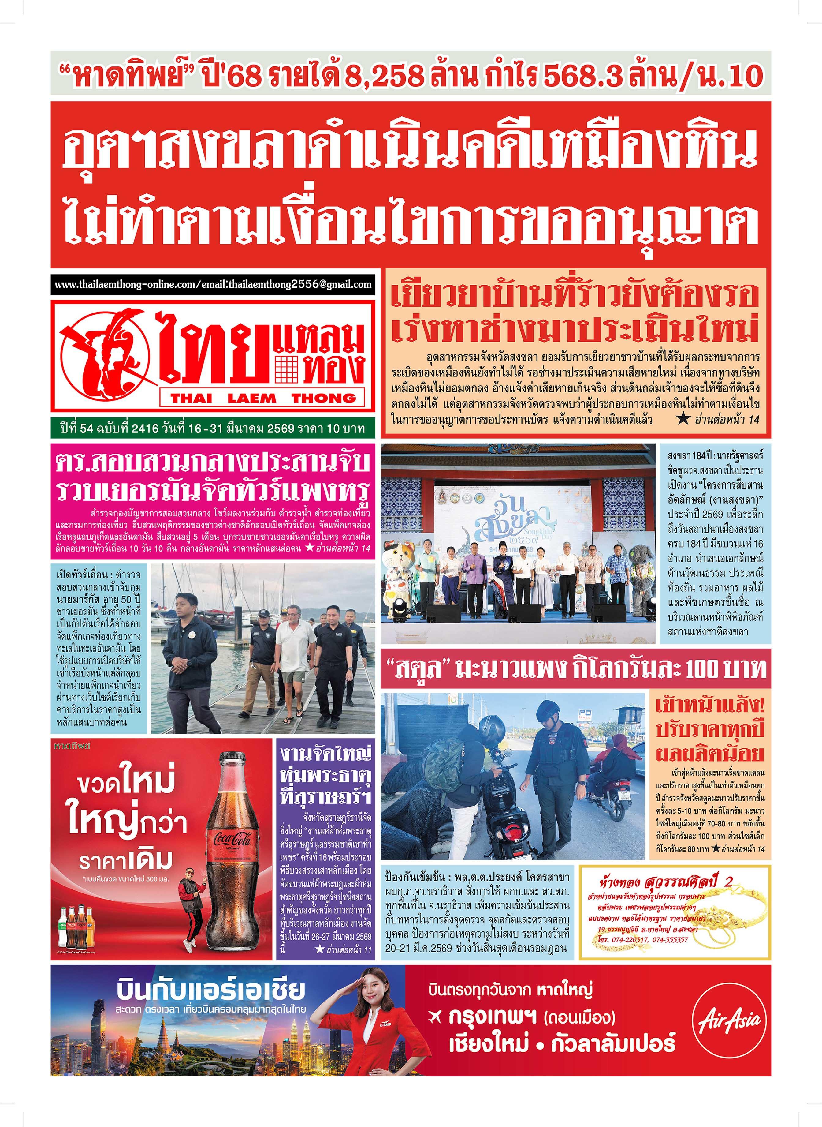 สงขลา - เมื่อวันที่ 12 มีนาคม 2569 บริษัท หาดทิพย์ จำกัด (มหาชน) ผู้ผลิตและจัดจำหน่ายเครื่องดื่มในเครือ “โคคา-โคล่า” ในพื้นที่ 14 จังหวัดภาคใต้ จัดนิทรรศการเทิดพระเกียรติ สมเด็จพระนางเจ้าสิริกิติ์ พระบรมราชชนนีพันปีหลวง เพื่อน้อมรำลึกในพระมหากรุณาธิคุณอันหาที่สุดมิได้ พร้อมถ่ายทอดพระราชประวัติและพระราชกรณียกิจอันทรงคุณูปการต่อประเทศชาติและประชาชนไทย