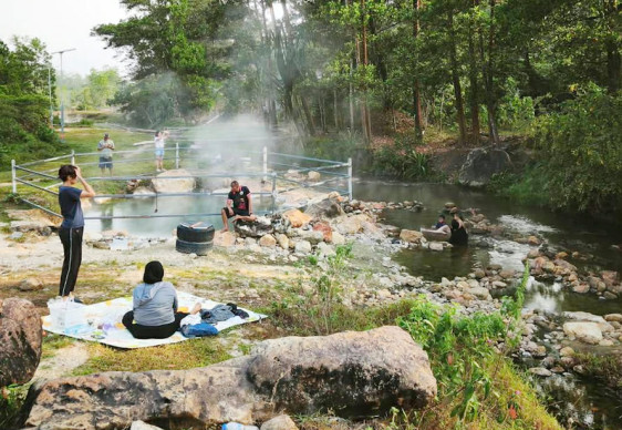 กระบี่-“บ่อน้ำพุร้อนคลองปลายพู่” ต.ท่านา อ.กะปง จ.พังงา กลายเป็นแหล่งท่องเที่ยวออนเซ็นแห่งใหม่กลางหุบเขา ที่นักท่องเที่ยวสายสุชภาพไปเแช่บำบัดโรคกันมาก เพราะบ่อน้ำพุร้อนอยู่ริมธารลำคลอง ไหลออกมารวมกับน้ำเย็นในลำคลอง กรมทรัพยากรน้ำบาดาลระบุเป็น 1 ใน 5 ของประเทศไทย ที่เป็นแหล่งพลังงานทดแทนในอนาคต
