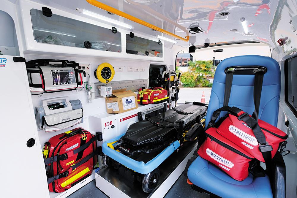 รถพยาบาลฉุกเฉินที่ได้รับการติดตั้งอุปกรณ์การแพทย์อย่างครบครัน