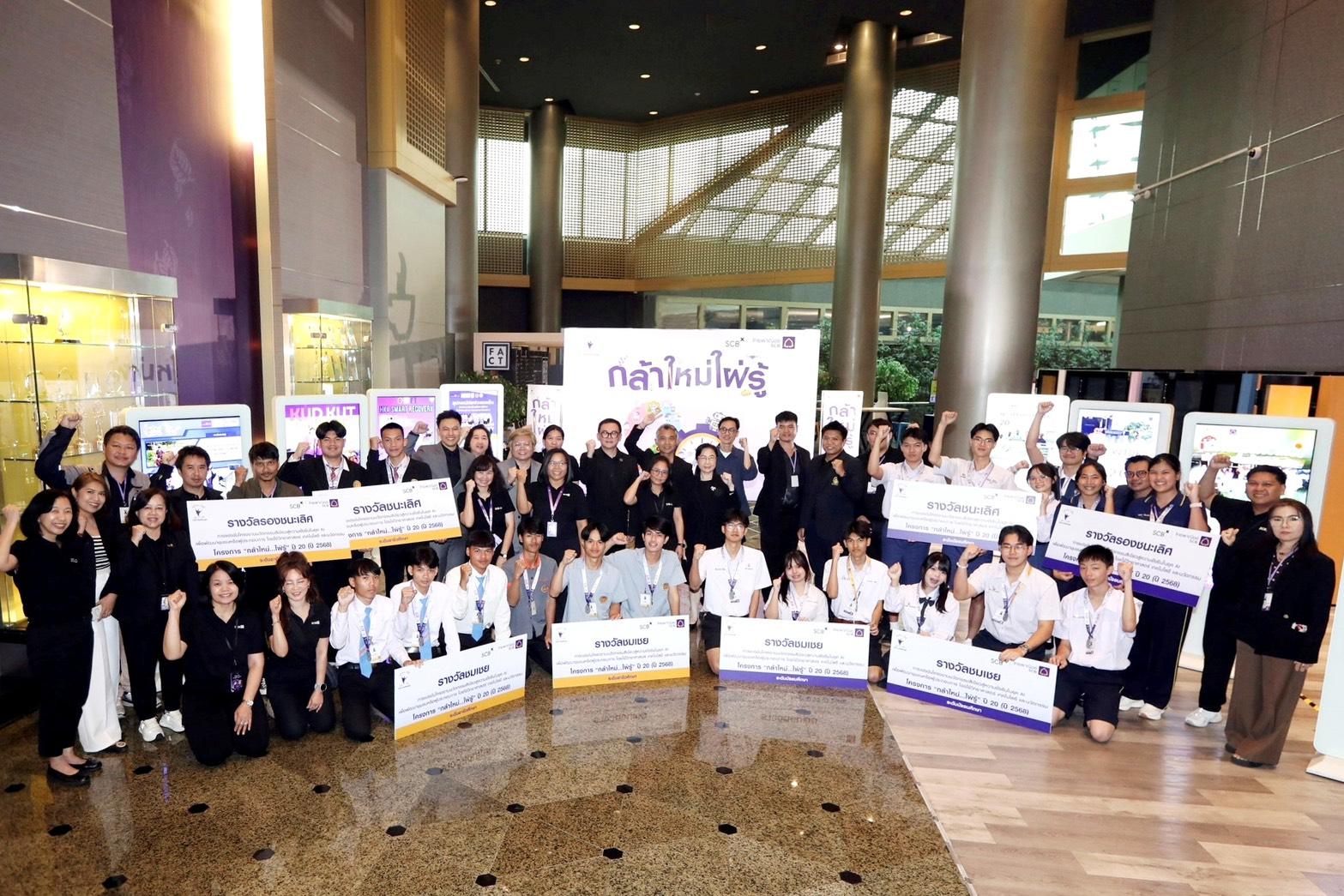 กรุงเทพฯ - กลุ่มเอสซีบีเอกซ์ โดย ธนาคารไทยพาณิชย์ จำกัด (มหาชน) ตระหนักถึงความสำคัญของการพัฒนาเยาวชนและส่งเสริมการเรียนรู้ จัดการแข่งขัน โครงการ “กล้าใหม่…ใฝ่รู้” ปีที่ 20 รอบชิงชนะเลิศ ระดับมัธยมศึกษาและอาชีวศึกษา เพื่อพัฒนาศักยภาพและทักษะของเยาวชนในศตวรรษที่ 21 ผ่านการจัดทำโครงงานที่เกิดประโยชน์ต่อชุมชนและสถานประกอบการอย่างยั่งยืน ตามแนวทาง ESG โดยใช้วิทยาศาสตร์ เทคโนโลยี และนวัตกรรม ซึ่งปีนี้จัดขึ้นภายใต้แนวคิด “นวัตกรรมสีเขียวสู่ความยั่งยืนในยุค AI” โดยมี นายสุธีรพันธุ์ สักรวัตร Chief Customer Office บริษัท เอสซีบี เอกซ์ จำกัด (มหาชน) เป็นประธานในพิธีเปิดและมอบรางวัล พร้อมด้วยคณะกรรมการตัดสิน ได้แก่ ดร.กัลยา อุดมวิทิต รองผู้อำนวยการสำนักงานพัฒนาวิทยาศาสตร์และเทคโนโลยีแห่งชาติ นายศักดิ์สิทธิ์ ปิติพงศ์สุนทร ผู้อำนวยการอาวุโส ผู้บริหารสายงานกิจกรรมเพื่อสังคม ธนาคารไทยพาณิชย์ จำกัด (มหาชน) นายชัชวาล สังคีตตระการ วิศวกรวิจัยอาวุโส ศูนย์เทคโนโลยีอิเล็กทรอนิกส์และคอมพิวเตอร์แห่งชาติ (NECTEC) ว่าที่ ร.ต.ปิยะพงษ์ ยงเพชร อาจารย์ประจำคณะวิทยาศาสตร์และเทคโนโลยี มหาวิทยาลัยราชภัฏวไลยอลงกรณ์ในพระบรมราชูปถัมภ์ และ นายนเรศ หาญพันธ์พงษ์ Production Program Manager บริษัท อมรินทร์ เทเลวิชั่น จำกัด ซึ่งจัดขึ้น ณ ธนาคารไทยพาณิชย์ สำนักงานใหญ่