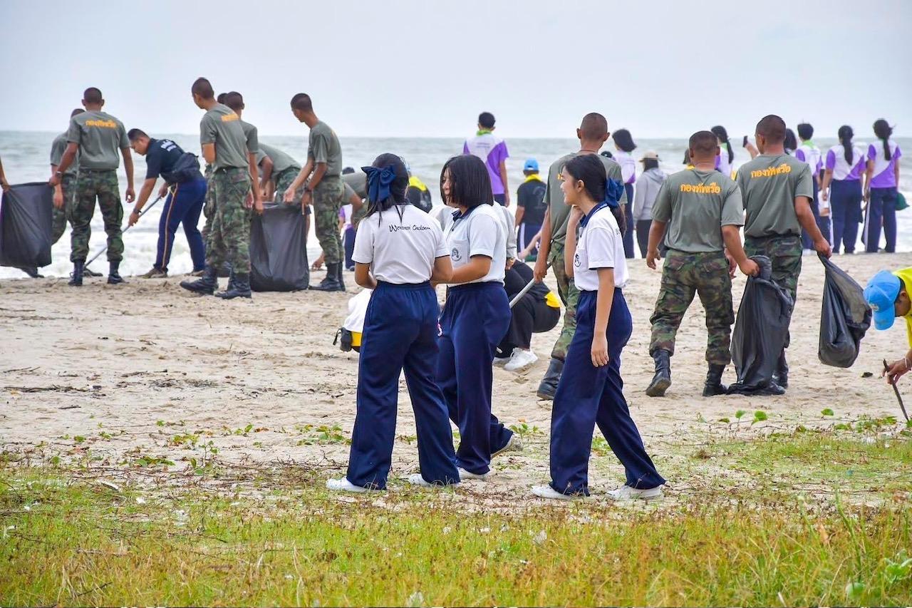 สงขลา-จิตอาสาทัพเรือภาคที่ 2 ปล่อยเต่าทะเลและเก็บขยะชายหาดชลาทัศน์ สงขลา ถวายเป็นพระราชกุศลเนื่องในโอกาสวันคล้ายวันประสูติ สมเด็จพระเจ้าลูกเธอ เจ้าฟ้าสิริวัณณวรี นารีรัตน์ราชกัญญา
