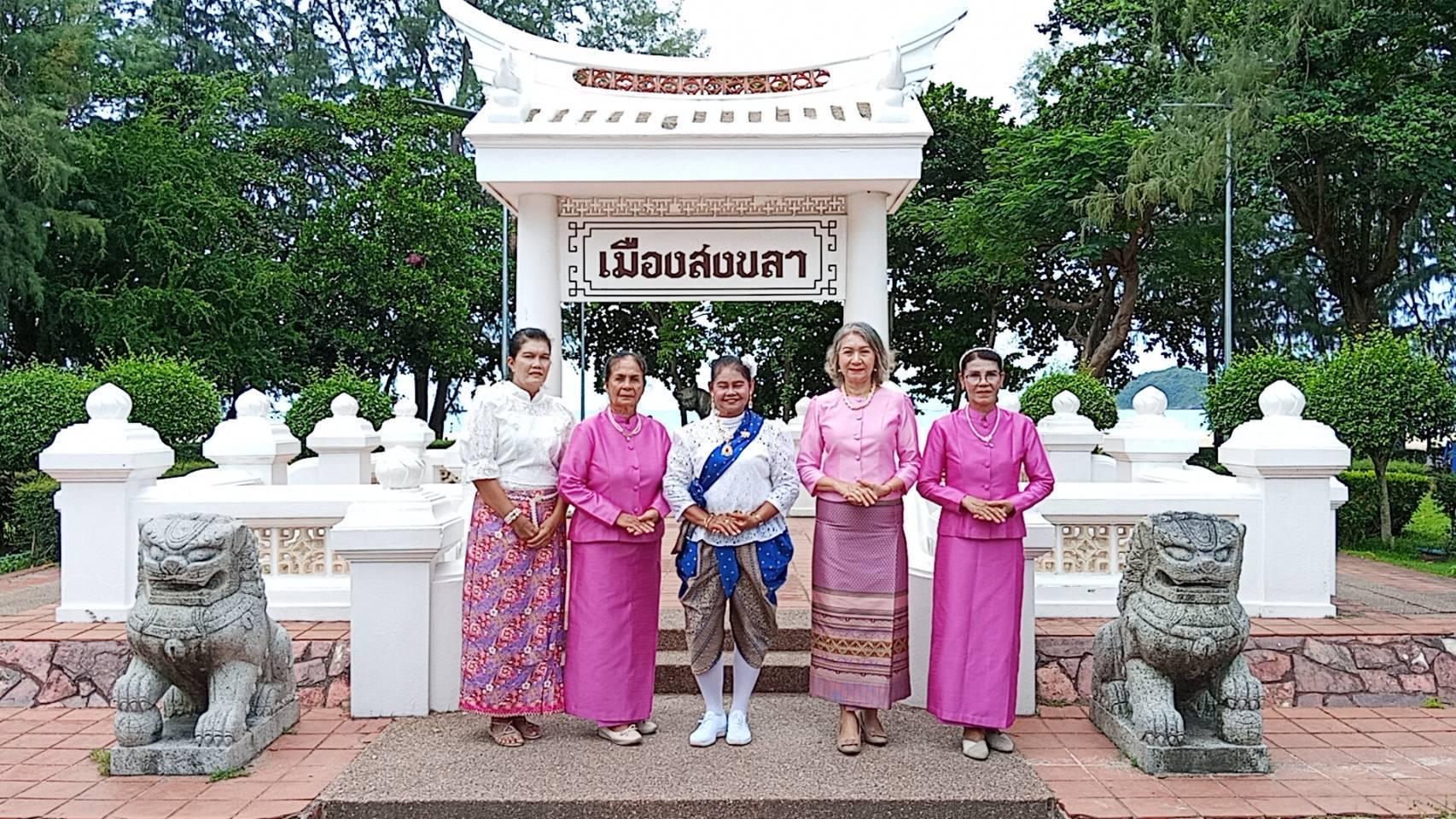 สงขลา-ชมรมสภาวัฒนธรรมตำบลเขารูปช้าง นำสมาชิกแต่งชุดไทยหลายสมัย ถ่ายภาพกับนางเงือกทองแห่งหาดสมิหลา และป้อมเมืองสัญลักษณ์ของเมืองสงขลา ส่งเสริมการท่องเที่ยววิถีไทย