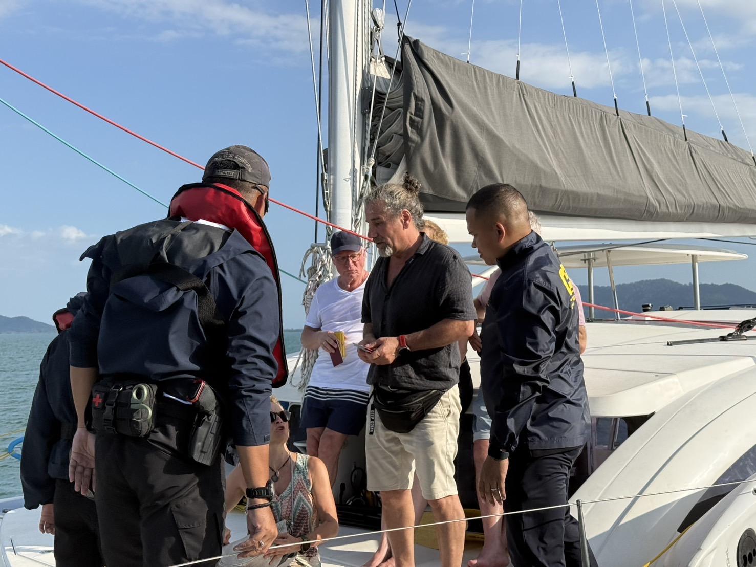 เจ้าหน้าที่ได้ตรวจสอบบริเวณน่านน้ำจังหวัดภูเก็ต พบเรือใบหรูต้องสงสัยลอยลำอยู่กลางทะเลอันดามัน ในพื้นที่ ต.ไม้ขาว อ.ถลาง จ.ภูเก็ต เมื่อเวลา 17.20 น.วันที่ 12 มี.ค.69 จึงเข้าตรวจสอบ พบชายชาวเยอรมัน ทราบชื่อคือ นายมาร์กัส อายุ 50 ปี ทำหน้าที่เป็นกัปตันเรือ ตรวจสอบเบื้องต้นพบว่าเรือลำดังกล่าวอยู่ภายใต้บริษัทที่เปิดดำเนินการในลักษณะให้เช่าเรือ แต่มีการนำเรือไปใช้ลักลอบจัดแพ็กเกจท่องเที่ยวให้แก่นักท่องเที่ยวต่างชาติ ภายในเรือพบนักท่องเที่ยวชาวเยอรมันจำนวน 6 คน