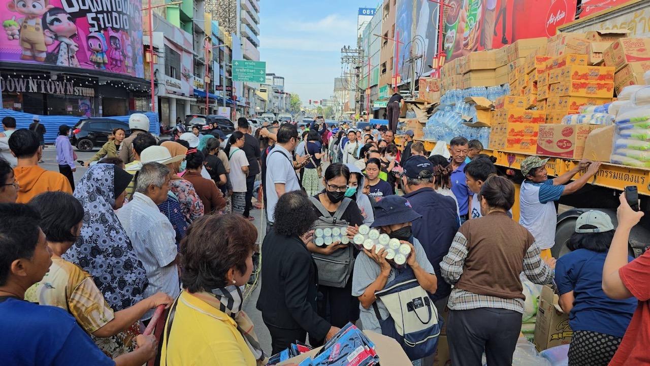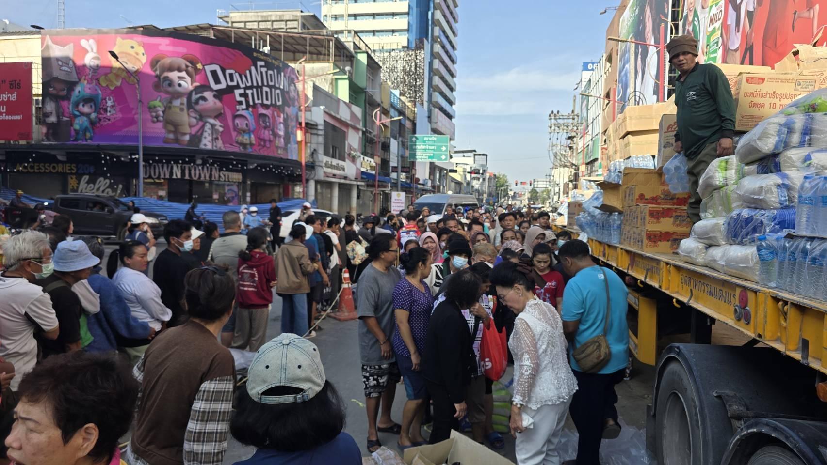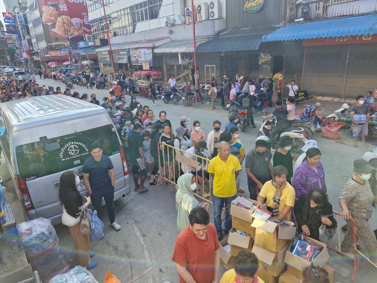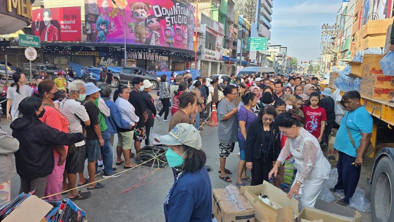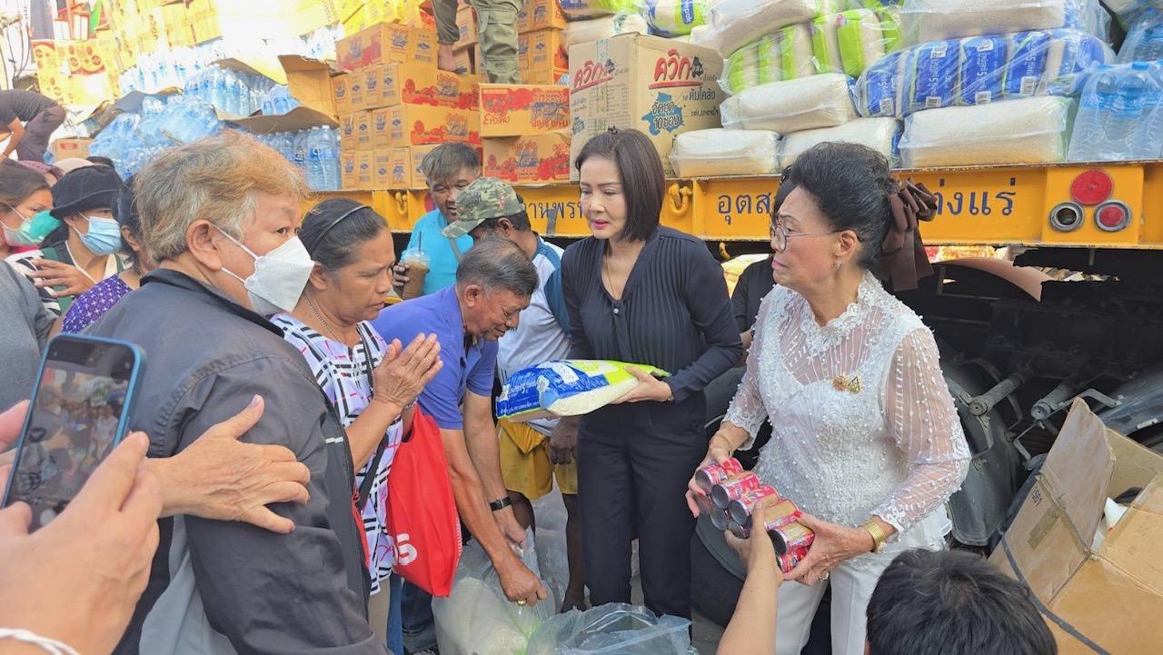 “ตลาดกิมหยง” แจกสิ่งของซับน้ำตาผู้ประสบอุทกภัย-คนรับเนืองแน่น