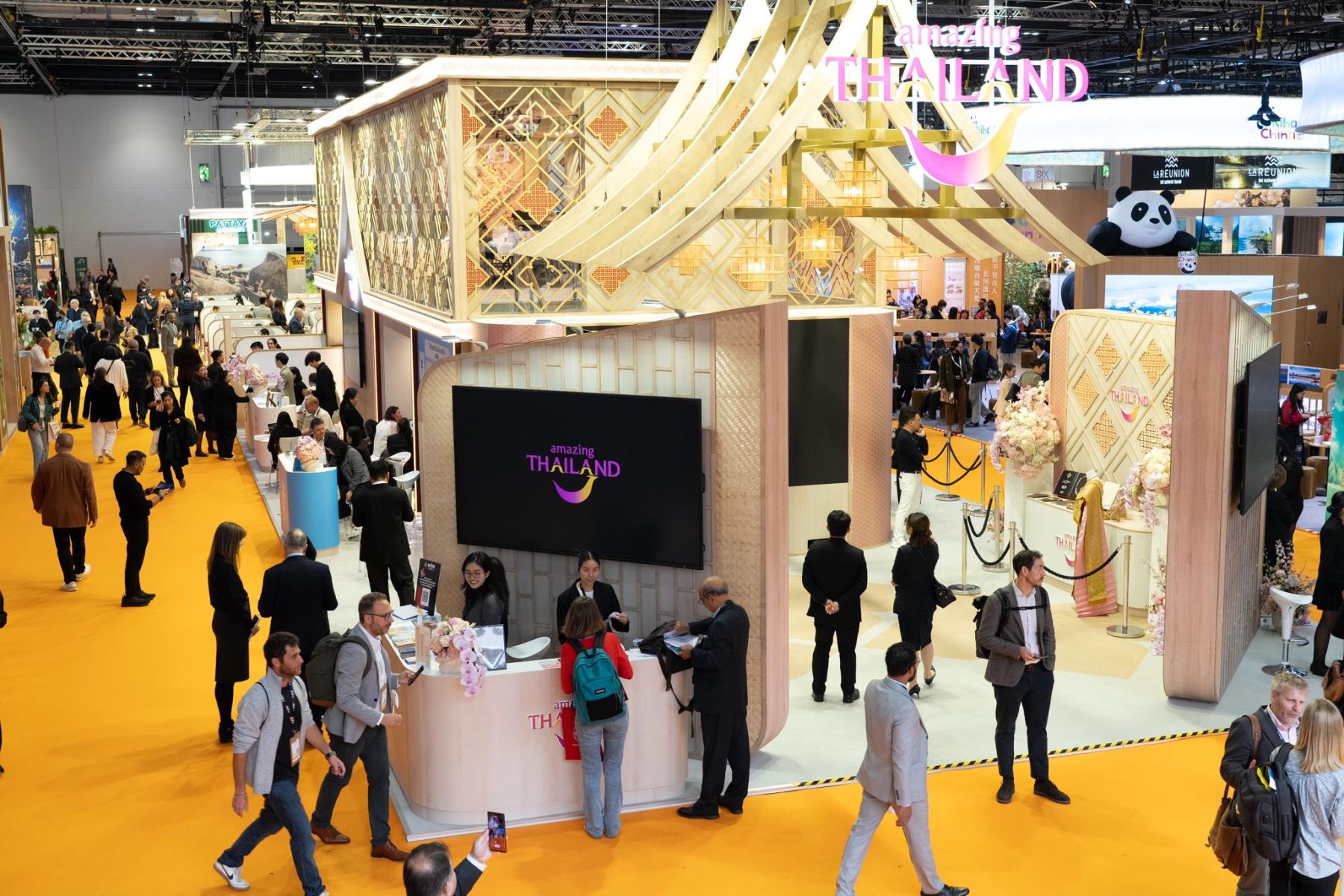 สำหรับคูหาประเทศไทย ททท. สร้างสรรค์ด้วยแนวคิด “Senses of Siam : A Journey to Total Well-being” โดยเชื่อมโยงความเป็นไทยเข้ากับแนวคิดการดูแลสุขภาพแบบองค์รวม ผ่าน “ประสาทสัมผัสทั้งห้า” ทั้งการมองเห็น การได้ยิน การได้กลิ่น การลิ้มรส และการสัมผัส โดยในปีนี้ ททท. ได้นำเสนอสินค้าและบริการท่องเที่ยว Health & Wellness ควบคู่กับให้ความสำคัญกับการท่องเที่ยวที่รับผิดชอบต่อสังคมและสิ่งแวดล้อม พร้อมนำทัพผู้ประกอบการท่องเที่ยวไทย จำนวน 50 ราย เข้าร่วมงาน ประกอบด้วย ผู้ประกอบธุรกิจโรงแรมและรีสอร์ต จำนวน 41 ราย และ DMC จำนวน 9 ราย ซึ่งเป็นผู้ประกอบการไทยที่ได้รับรางวัล Thailand Tourism Award จำนวน 7 ราย, โครงการ STAR จำนวน 24 ราย และ CF Hotels จำนวน 12 ราย นอกจากนี้ยังเปิดโอกาสให้ผู้ประกอบการจากเมืองน่าเที่ยว 8 ราย มานำเสนอสินค้าและบริการทางการท่องเที่ยว ได้แก่ จันทบุรี ตราด น่าน สุโขทัย นครราชสีมา ตรัง นครศรีธรรมราช