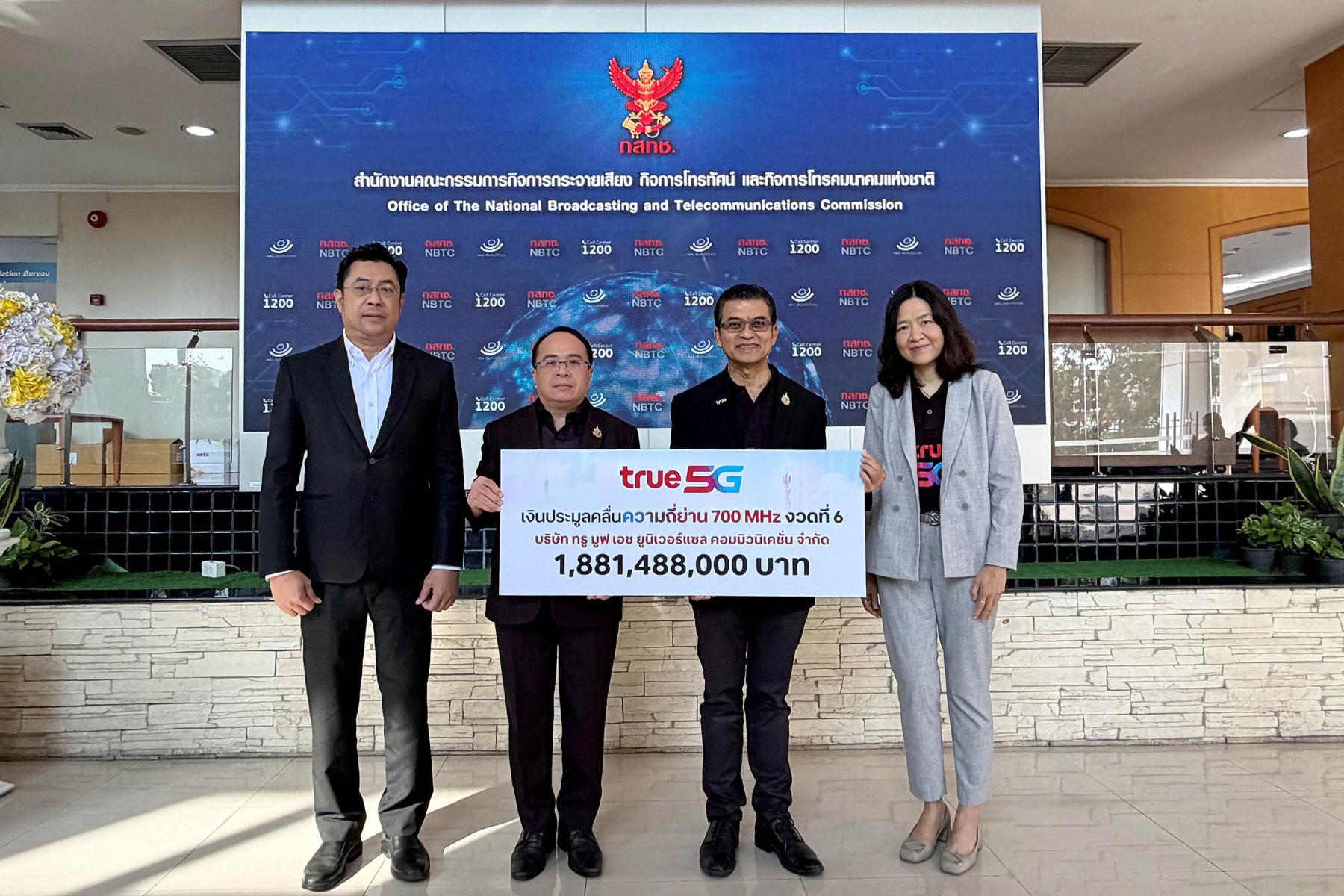 กรุงเทพฯ - เมื่อวันที่ 9 มกราคม 2569 บริษัท ทรู มูฟ เอช ยูนิเวอร์แซล คอมมิวนิเคชั่น จำกัด ชำระค่าใบอนุญาตใช้คลื่นความถี่ย่าน 700 MHz งวดที่ 6 จำนวน 1,881,488,000 บาท (รวมภาษีมูลค่าเพิ่ม) ให้แก่สำนักงานคณะกรรมการกิจการกระจายเสียง กิจการโทรทัศน์ และกิจการโทรคมนาคมแห่งชาติ (กสทช.) พร้อมวางหนังสือค้ำประกันจากสถาบันการเงินสำหรับค่าคลื่นความถี่ส่วนที่เหลือตามเงื่อนไขที่กำหนด พร้อมพัฒนาโครงสร้างพื้นฐานดิจิทัลของประเทศอย่างต่อเนื่อง