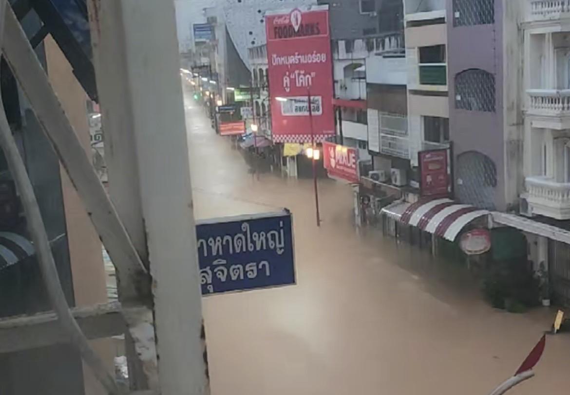 พื้นที่เศรษฐกิจกาดใหญ่ถูกน้ำท่วมหนัก เช่น ตลาดกิมหยงถนนนิพัทธ์อุทิศ 1 นิพัทธอุทิศ 2 และนิพัทธ์อุทิศ 3 ถนนเพชรเกษม ช่วงหน้าหอนาฬิกาหาดใหญ่ และตลาดสดเทศบาลนครหาดใหญ่ น้ำท่วมสูง รถเล็กไม่สามารถสัญจรได้ ฝนยังตกอย่างหนักต่อเนื่องในพื้นที่ เจ้าหน้าที่เร่งระดมกำลังช่วยเหลือ ส่วนโซนโรงพยายาลหาดใหญ่ น้ำท่วมถนนรอบนอกตั้งแต่กลางดึกถึงเช้า และน้ำไหลทะลักเข้าโรงพยาบาล เจ้าหน้าที่ต้องเตรียมขนย้ายผู้ป่วยไปอยู่ในพื้นที่ที่ปลอดภัย โซนหาดใหญ่ใน เส้นทางที่จะไปท่าอากาศยานนานาชาติหาดใหญ่ ถูกน้ำท่วมรถเล็กผ่านไปมาไม่ได้ รวมถึงเส้นทางที่จะไป อ.สะเดา ถูกน้ำท่วมเช่นกัน