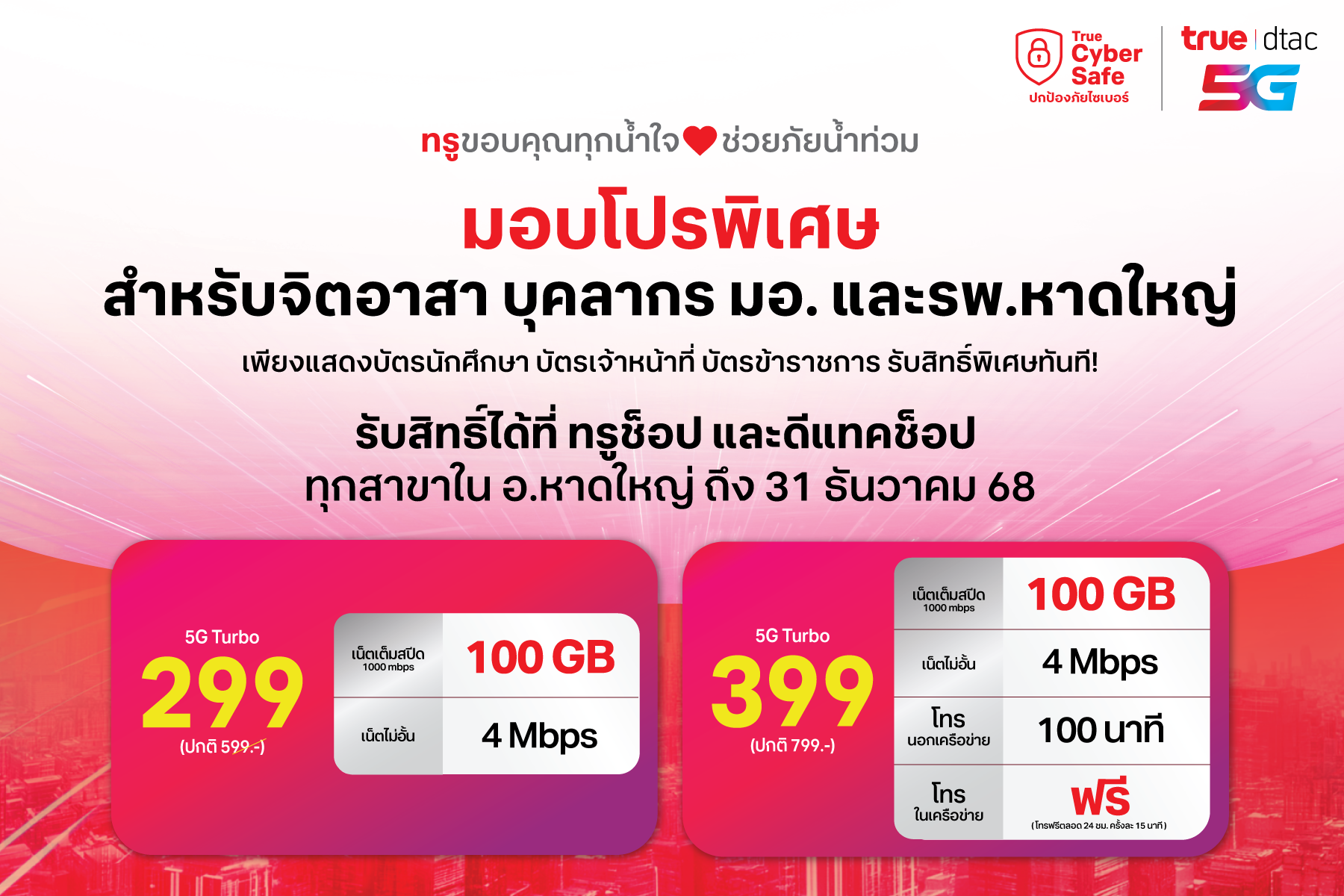 น้ำท่วมจากไป น้ำใจคงอยู่.....ทรู-ดีแทค พร้อมดูแลชาวหาดใหญ่–สงขลา ด้วยสมาร์ทโฟนราคาพิเศษเริ่มเพียง 99 บาท