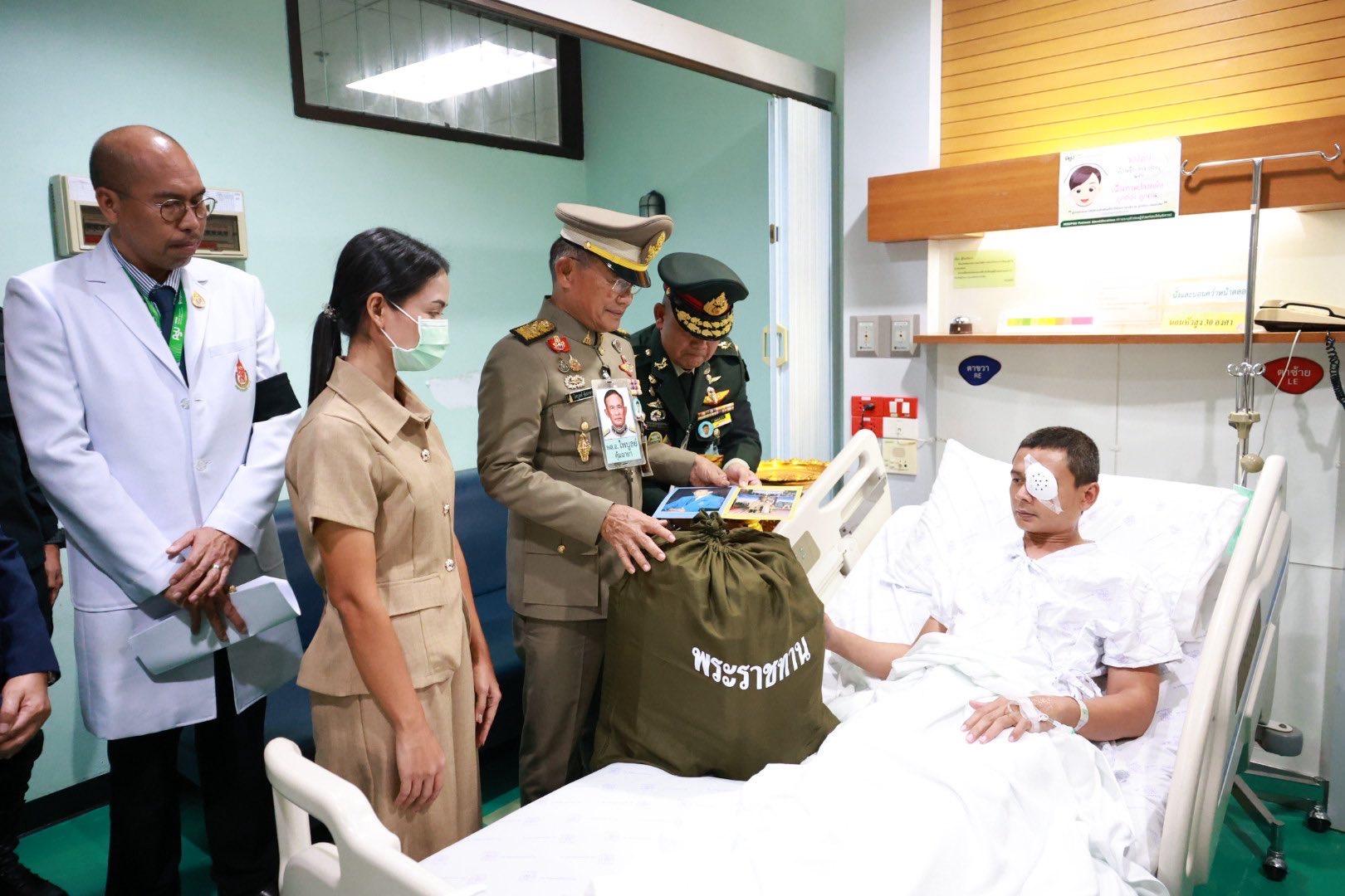 พลเอก ไพบูลย์ คุ้มฉายา องคมนตรี ได้เข้าเยี่ยมอาการผู้ได้รับบาดเจ็บ ณ หอผู้ป่วยกระดูกและข้อชาย ชั้น 2 โดยได้เชิญสิ่งของพระราชทานมอบแก่ดาบตำรวจ พิชิตพาล เวชชาชีวี เจ้าหน้าที่ชุดปฏิบัติการทำลายวัตถุระเบิด (EOD) ซึ่งได้รับบาดเจ็บบริเวณมือทั้ง 2 ข้าง จากเหตุคนร้ายลอบวางระเบิดภายในสถานีบริการน้ำมัน ปตท. สาขาตะลุโบะ จังหวัดปัตตานี เมื่อวันที่ 4 กุมภาพันธ์ 2569 โดยองคมนตรีได้กล่าวให้กำลังใจ พร้อมสอบถามอาการและความคืบหน้าในการรักษาอย่างใกล้ชิดจากนั้น ได้เดินทางไปยังอาคาร 13 ชั้น ชั้น 6 หอผู้ป่วยตาเชิญสิ่งของพระราชทานมอบแก่อาสาสมัครทหารพราน พงษ์ธร อักษรเงิน ซึ่งได้รับบาดเจ็บจากเหตุคนร้ายใช้อาวุธปืนดักซุ่มยิง ชุดปฏิบัติการเคลื่อนที่เร็วเฉพาะกิจทหารพรานที่ 4901 บนถนนบ้านไอร์ลาฆอ หมู่ที่ 5 ตำบลช้างเผือก อำเภอจะแนะ จังหวัดนราธิวาส เมื่อวันที่ 4 เมษายน 2569