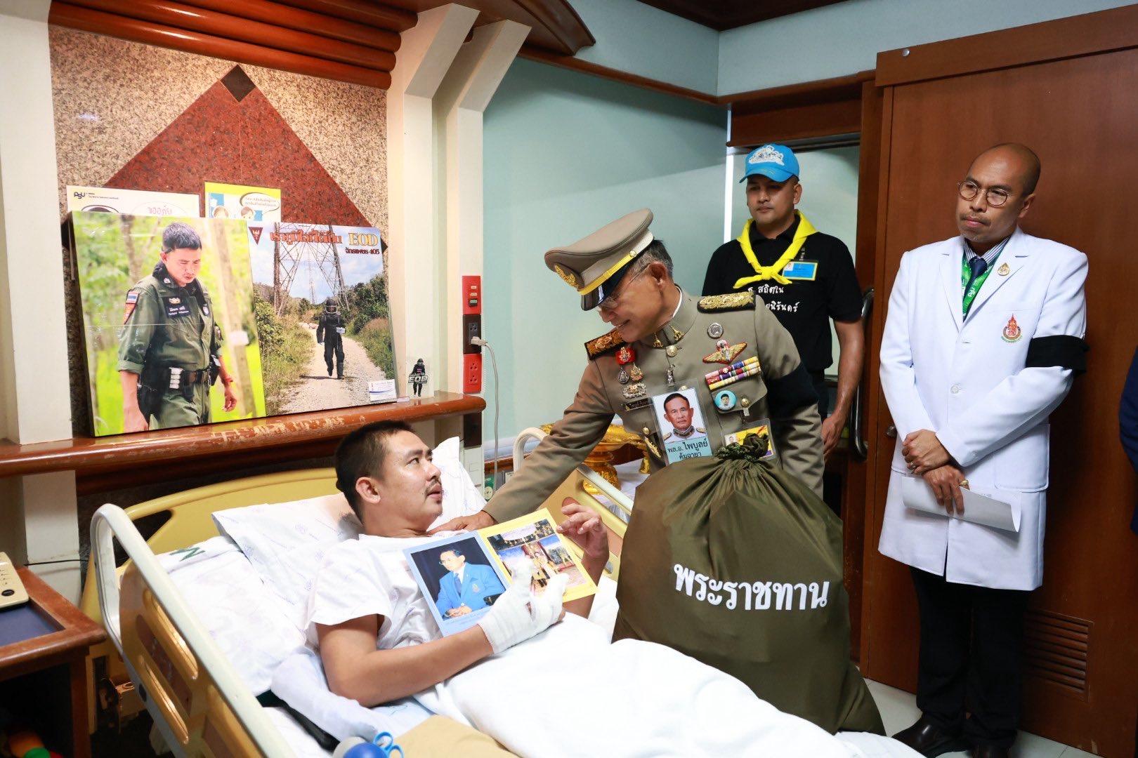 พร้อมกันนี้ ได้เชิญสิ่งของพระราชทานมอบแก่สิบโท ศุภณัฐ พรหมสุทธิ์ หัวหน้าชุดปฏิบัติการ กองร้อยทหารพรานที่ 4901 อาสาสมัครทหารพรานอนาวิล จินดาพรรณ อาสาสมัครทหารพรานพงษ์ธร อักษรเงิน และร้อยโท วาทิต วัฒนสันติ์ ซึ่งได้รับบาดเจ็บจากเหตุการณ์เดียวกันและเข้ารับการรักษาตัว ณ หอผู้ป่วยเฉลิมพระบารมี ชั้น 8 โดยองคมนตรีได้ให้กำลังใจแก่ผู้บาดเจ็บทุกราย พร้อมเน้นย้ำถึงความห่วงใยของพระบาทสมเด็จพระเจ้าอยู่หัว และสมเด็จพระนางเจ้าฯ พระบรมราชินี ที่ทรงมีต่อเจ้าหน้าที่ผู้ปฏิบัติหน้าที่อย่างใกล้ชิด