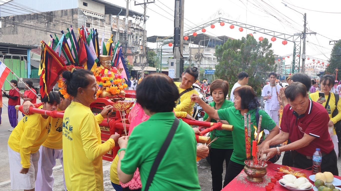 ขบวนแห่พระ มีการแห่เกี้ยวองค์พระจำลองเจ้าแม่กวนอิม เจ้าพ่อกวนอู แป๊ะกง และองค์พระจำลองอื่นๆ รวม 9 องค์ ขบวนม้าทรง ซึ่งปีนี้มีม้าทรง จากประเทศมาเลเซียได้มาร่วมแห่ด้วย ขบวนสิงโต มังกร และขบวนพาเหรดของนักเรียนและสมาคมต่างๆ แห่ไปตามถนนย่านธุรกิจการค้า ผ่านหอนาฬิกา ตลาดสดเทศบาลเมืองเบตง เพื่อให้พี่น้องประชาชน นักท่องเที่ยวได้กราบไหว้ บางบ้านก็จะตั้งโต๊ะบูชาไว้หน้าบ้านเพื่อคอยรับองค์พระ แล้วกราบไหว้ขอพรเพื่อความเป็นสิริมงคลแก่ตัวเองและครอบครัว ตามสองข้างทางที่ขบวนผ่านก็จะมีประชาชน นักท่องเที่ยว ยืนดู คอยถ่ายรูป บุตรหลาน ญาติ พี่น้อง ที่แต่งกายสวยงามในชุดจีนสีแดง ร่วมอยู่ในขบวนพาเหรด