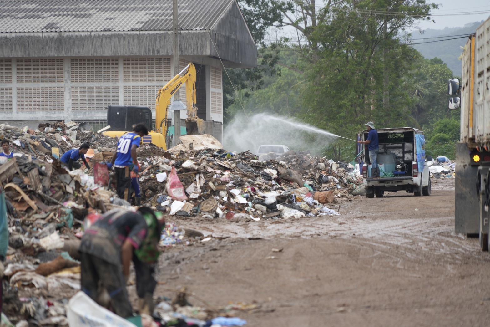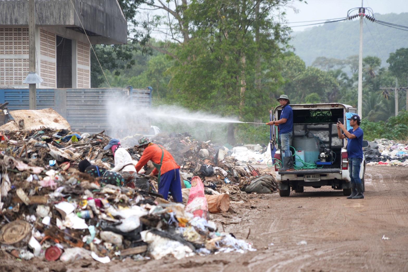 อบจ.สงขลา ใช้โดรนพ่นฉีดฆ่าเชื้อกองขยะจากน้ำท่วมหาดใหญ่