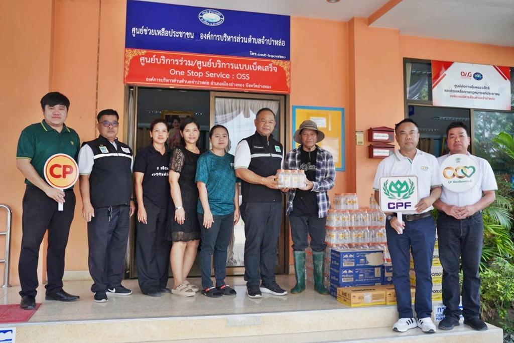 เมื่อเห็นความเดือดร้อนของพี่น้องประชาชน บริษัท เจริญโภคภัณฑ์อาหาร จำกัด (มหาชน) หรือ ซีพีเอฟ จึงเร่งเข้าช่วยเหลือผู้ประสบภัยทันที ภายใต้เจตนารมณ์ “อยู่เคียงข้างทุกวิกฤต” โดยมี นายธราพงษ์ ธนสำราญสุข รองผู้อำนวยการธุรกิจผลิตและขายอาหารสัตว์บกภาคกลาง 1 นำทีมจิตอาสาจากโรงงานผลิตอาหารสัตว์ท่าเรือ ลงพื้นที่ร่วมกับผู้นำท้องถิ่น นำโดย นายไพโรจน์ พวงศิริ นายกเทศมนตรีเทศบาลตำบลไผ่ดำพัฒนา, นายศิวกร นิรันดร นายกองค์การบริหารส่วนตำบลจำปาหล่อ และ นายระวีพงศ์ วีระพงศ์ นายกองค์การบริหารส่วนตำบลคลองวัว จังหวัดอ่างทอง เพื่อส่งมอบความช่วยเหลือถึงมือชาวบ้าน