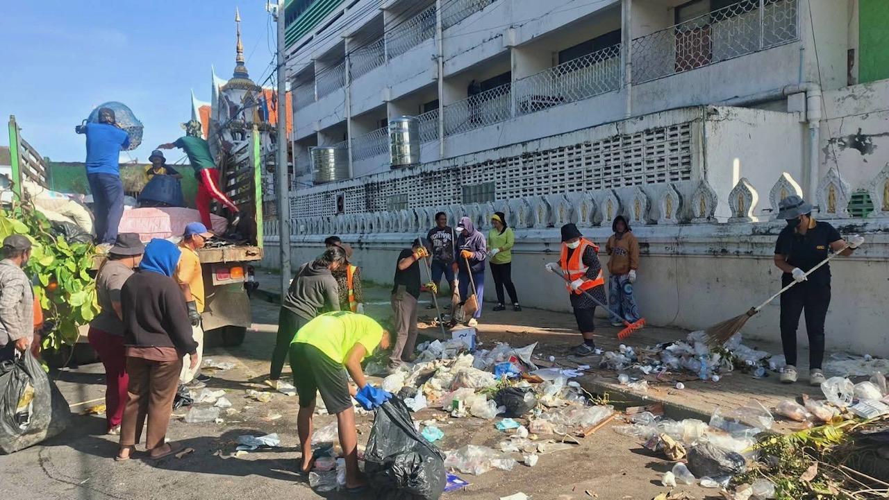 สงขลา-เทศบาลนครสงขลา ระดมพนักงานลงพื้นที่เก็บขยะ ฟื้นฟูเมือง คืนความสะอาด หลังสถานการณ์น้ำลด บริเวณชุมชนแหล่งพระราม และชายหาดสมิหลา