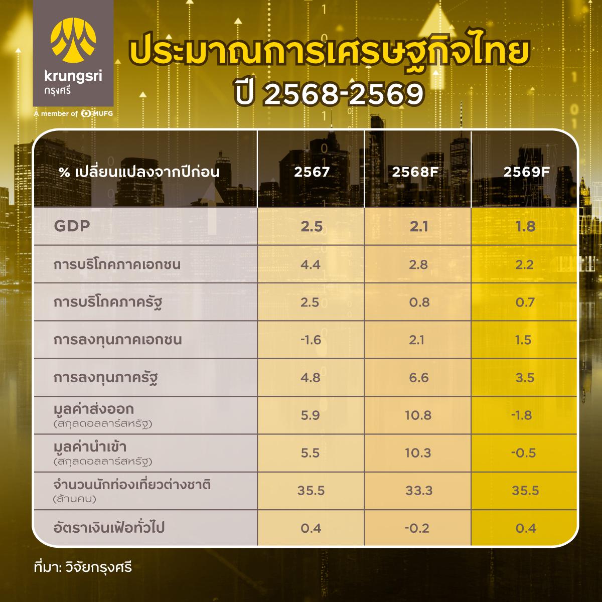 ดร.พิมพ์นารา หิรัญกสิ หัวหน้าทีมวิจัยเศรษฐกิจ และผู้บริหารสายงานวิจัย ธนาคารกรุงศรีอยุธยา จำกัด (มหาชน) กล่าวว่า “โดยรวมแล้ว เศรษฐกิจไทยในปี 2569 ถือเป็นปีแห่งการประคองตัวท่ามกลางกระแสความไม่แน่นอน ทั้งจากปัจจัยภายในและภายนอก แม้เศรษฐกิจจะได้รับแรงพยุงจากภาคท่องเที่ยว การลงทุนจากต่างประเทศ และอุปสงค์ในประเทศบางส่วน แต่ยังต้องเผชิญความเสี่ยงและความท้าทายสำคัญหลายด้าน ได้แก่ (i) ความตึงเครียดทางการค้าโลกที่ทวีขึ้น นโยบายเศรษฐกิจของสหรัฐฯ ที่ยังมีความไม่แน่นอน และความเสี่ยงทางภูมิรัฐศาสตร์ (ii) การไหลทะลักของสินค้าจีนเข้าสู่ตลาดไทย ที่อาจมาพร้อมกับการนำเข้าสินค้าสหรัฐฯ ตามกรอบข้อตกลงการค้า อันจะเพิ่มความเสี่ยงภาวะ Twin Influx ซึ่งจะสร้างแรงกดดันต่อการผลิตสินค้าไทยหลายกลุ่ม (iii) ความแปรปรวนของสภาพอากาศที่จะกระทบต่อรายได้เกษตรกร (iv) ปัญหาเชิงโครงสร้าง เช่น หนี้ครัวเรือนสูง และความสามารถในการแข่งขันที่ลดลงของบางอุตสาหกรรม และ (v) ความไม่แน่นอนด้านนโยบายและความเสี่ยงทางการเมืองในประเทศ ทั้งหมดนี้สะท้อนภาพเศรษฐกิจที่แม้ยังเดินหน้าได้ แต่ต้องอาศัยการบริหารจัดการอย่างระมัดระวังเพื่อรองรับกับแรงกดดันจากหลายด้านในปี 2569”.