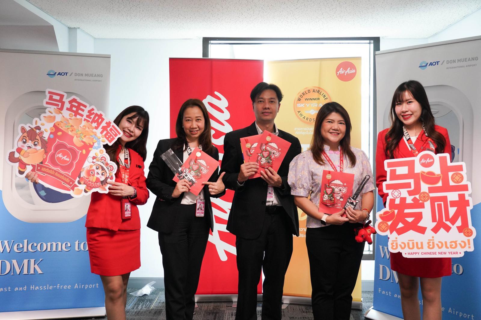 กรุงเทพฯ - เมื่อวันที่ 16 กุมภาพันธ์ 2569 แอร์เอเชีย ร่วมกับท่าอากาศยานดอนเมือง การท่องเที่ยวแห่งประเทศไทย จัดกิจกรรมต้อนรับนักท่องเที่ยวจีนที่เดินทางมาเที่ยวเมืองไทย อย่างคึกคักในเทศกาลตรุษจีน โดยในเทศกาลตรุษจีนปีนี้มีนักท่องเที่ยวเดินทางมาเที่ยวเมืองไทยจำนวนมาก มีอัตราการขนส่งผู้โดยสารในเส้นทางจากประเทศจีนสูงถึง 95% โดยเฉพาะเมืองอู่ฮั่น ฉงชิ่ง และฉางซา