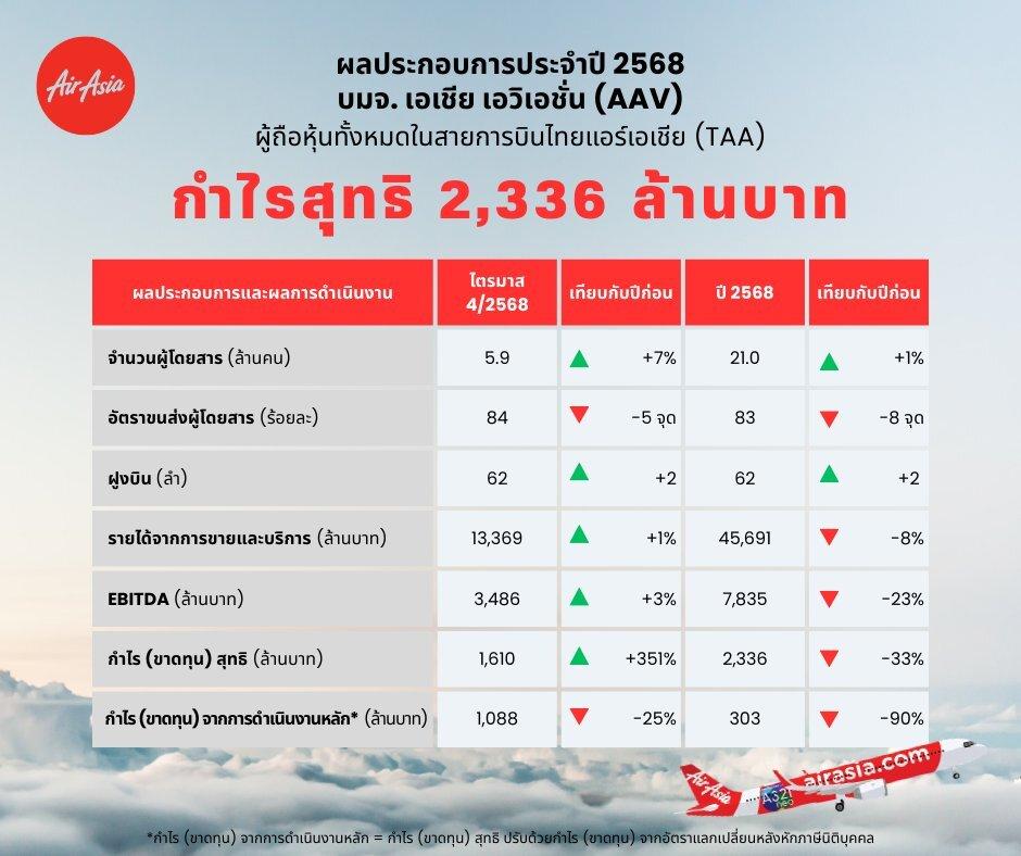 AAV ประกาศผลประกอบการทางการเงิน ตลอดปี 2568