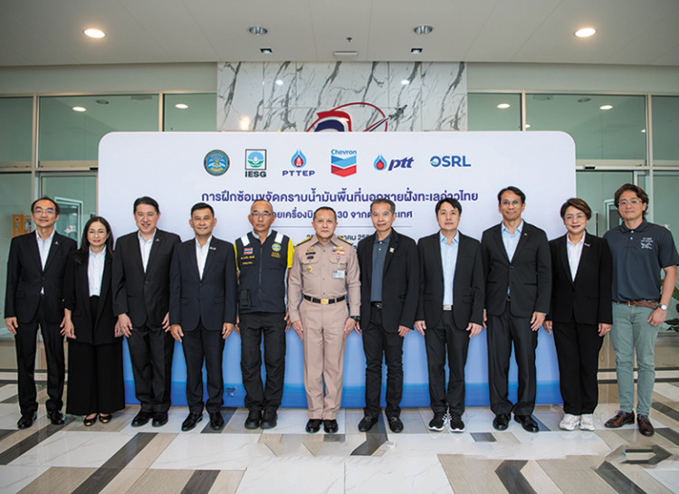กรุงเทพฯ - เมื่อวันที่ 4 กันยายน 2568 ศรชล. IESG ปตท.สผ. ปตท.สผ. อีดี เชฟรอน OSRL และหน่วยงานรัฐและเอกชนที่เกี่ยวข้อง รวมกว่า 25 หน่วยงาน ร่วมกันฝึกซ้อมการขจัดคราบน้ำมันพื้นที่นอกชายฝั่งทะเลอ่าวไทยโดยการใช้เครื่องบิน C-130 ซึ่งเป็นการเตรียมความพร้อมในการรับมือกับสถานการณ์ฉุกเฉินได้อย่างมีประสิทธิภาพ เพื่อให้มั่นใจว่าการปฏิบัติงานการขจัดและควบคุมคราบน้ำมันเป็นไปอย่างรวดเร็ว ทันต่อสถานการณ์ เหมาะสมและปลอดภัยตามมาตรฐานกฎหมายและมาตรฐานสากล
