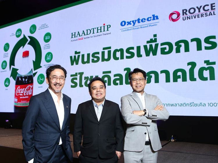 กรุงเทพฯ 11 กันยายน 2568 – บริษัท หาดทิพย์ จำกัด (มหาชน) หรือ HTC ผู้ผลิตและจำหน่ายเครื่องดื่มในเครือ “โคคา-โคล่า” ในพื้นที่ 14 จังหวัดภาคใต้ ประกาศความร่วมมือครั้งสำคัญกับ บริษัท อ๊อกซิเทค จำกัด ผู้เชี่ยวชาญด้านการเก็บรวบรวมวัสดุใช้แล้วเพื่อการรีไซเคิลและ บริษัท รอยซ์ ยูนิเวอร์แซล จำกัด ผู้เชี่ยวชาญด้านการรีไซเคิลวัสดุใช้แล้วควบวงจรเปิดตัว “พันธมิตรเพื่อการรีไซเคิลในภาคใต้” หรือ “Southern Recycling Alliance” ที่นำระบบโลจิสติกส์ย้อนกลับ (Reverse Logistics) มาใช้ในการเก็บขวดพลาสติก PET ใช้แล้วเพื่อผลิตเป็นเม็ดพลาสติกรีไซเคิล (rPET) และนำกลับมาผลิตเป็นบรรจุภัณฑ์เครื่องดื่มอีกครั้ง (Bottle-to-Bottle Recycling) ซึ่งนับเป็นการริเริ่มจัดทำโครงการในลักษณะนี้เป็นครั้งแรกของอุตสาหกรรมเครื่องดื่มในประเทศไทยและของธุรกิจ “โคคา-โคล่า” ทั่วโลก ตอกย้ำวิสัยทัศน์ด้านความยั่งยืนและการดำเนินธุรกิจอย่างมีความรับผิดชอบ ด้วยการใช้ทรัพยากรต่าง ๆ ให้เกิดประโยชน์สูงสุดและลดผลกระทบต่อสิ่งแวดล้อม