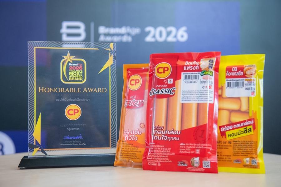 กรุงเทพฯ - จากความมุ่งมั่นในการพัฒนานวัตกรรมอาหารที่มีคุณค่าทางโภชนาการ เพื่อสุขภาพที่ดีและโลกที่ยั่งยืน บริษัท เจริญโภคภัณฑ์อาหาร จำกัด (มหาชน) หรือซีพีเอฟ ได้รับ 3 รางวัลจากเวที BrandAge Awards ครอบคลุมทั้งระดับองค์กรและแบรนด์ ได้แก่ 2025-2026 Thailand’s Most Admired Company องค์กรที่มีความน่าเชื่อถือสูงสุด อันดับ 1 กลุ่มธุรกิจอาหารพร้อมทาน และมีความโดดเด่นด้านนวัตกรรมในกลุ่มธุรกิจอาหาร พร้อมกันนี้ยังได้รับรางวัล 2026 Thailand’s Most Admired Brand หมวดผลิตภัณฑ์ไส้กรอกซีพี ต่อเนื่องเป็นปีที่ 4 โดยรางวัลดังกล่าวอ้างอิงจากผลสำรวจความคิดเห็นของผู้บริโภคทั่วประเทศ
